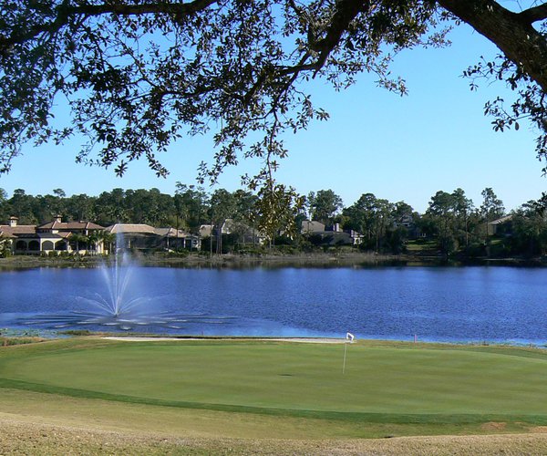 The housing, which lines both sides of many holes, is kept discreetly tucked-away behind plenty of tall pines, oaks and smaller bushes. Water is only in play at the close of each nine-hole loop, with the 9th and 18th arriving back at the clubhouse, their respective greens flanked by a small, fountain-adorned lake.